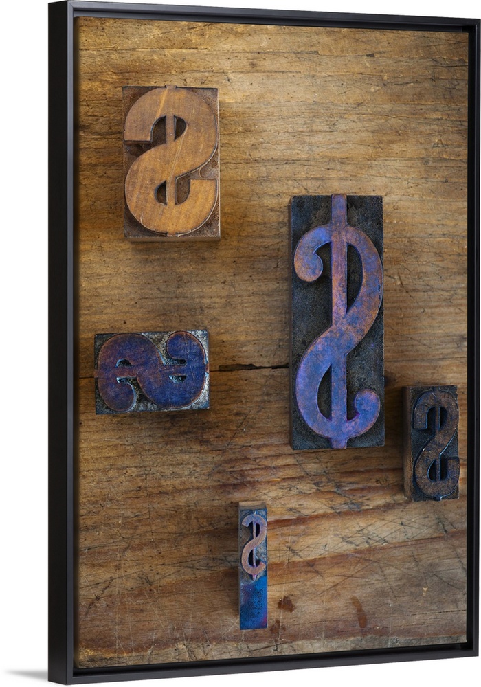 <p>Close up of printing blocks with dollar sign on wood</p>