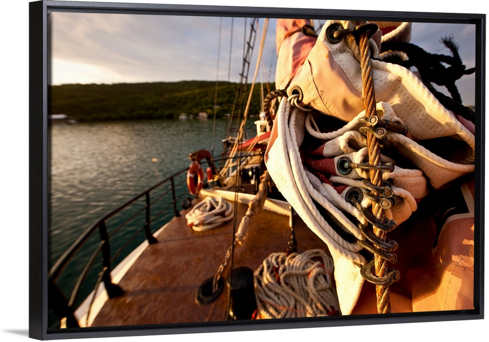 <p>Close-up of sail and rope on boat, Culebra Island, Puerto Rico</p>