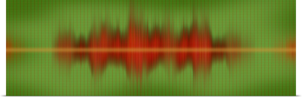 <p>Modern panoramic close up of bouncing, vibrantly colored sound waves on a simple, gridded cool-toned background.</p>