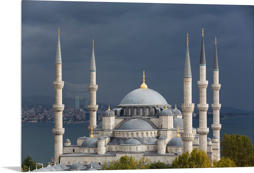 <p>Close-up of the Blue Mosque (Sultan Ahmed Mosque) under a grey sky, ground breaking in 1609, UNESCO World Heritage Site, Istanbul, Turkey</p>