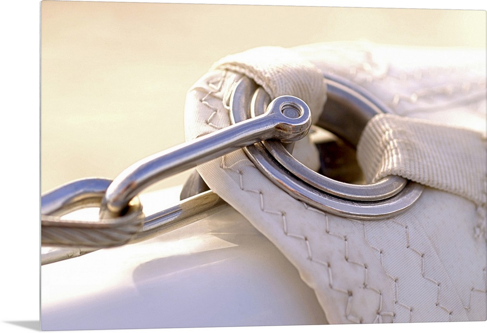 <p>This photograph was taken zoomed in on the eyelet on a sail of a sailboat.</p>