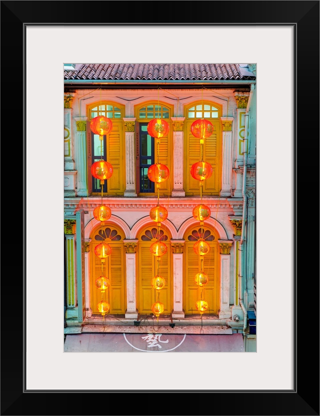 <p>Close up of the shutters and lanterns, Temple Street in Singapore's Chinatown, Singapore, South East Asia</p>