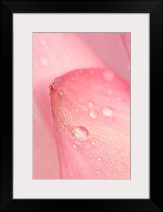<p>United States, DC, Washington, Kenilworth Aquatic Gardens.Close-up of tip of pink petal of a lotus with dew drops</p>