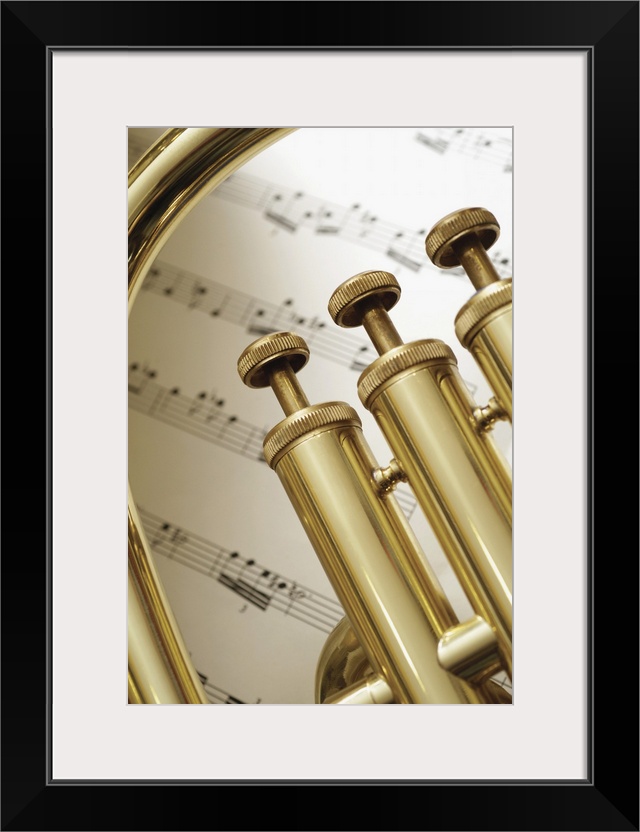 <p>Close-up of trumpet and sheet music</p>