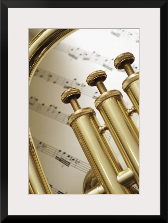 <p>Close-up of trumpet and sheet music</p>