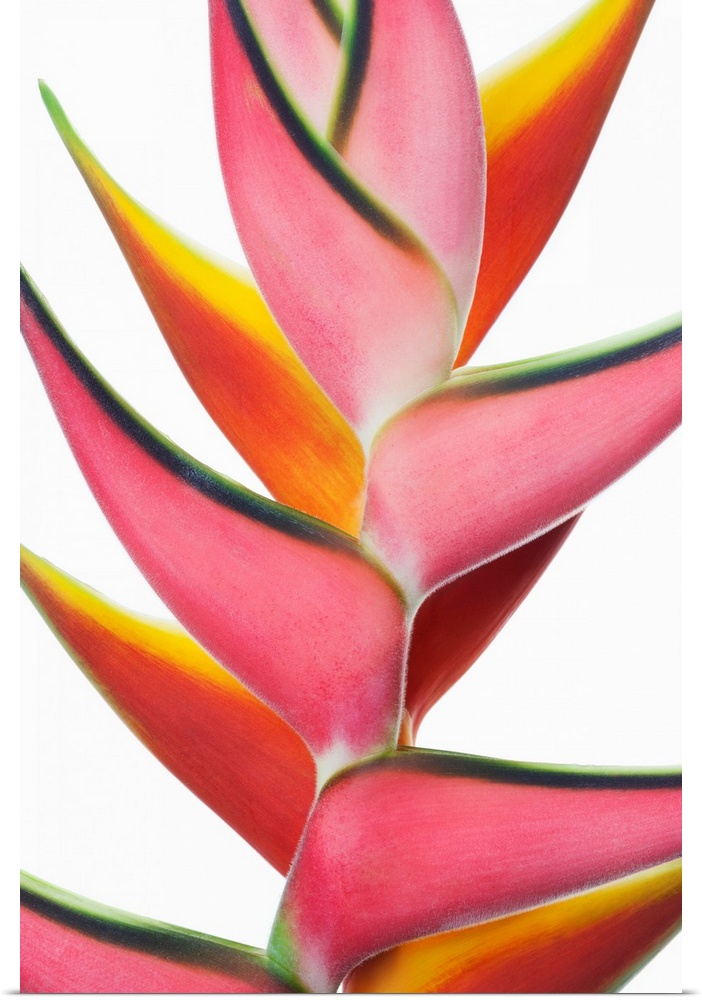 <p>Close-up of two vibrant Heliconia flower against a white background; Honolulu, Oahu, Hawaii, United States of America</p>