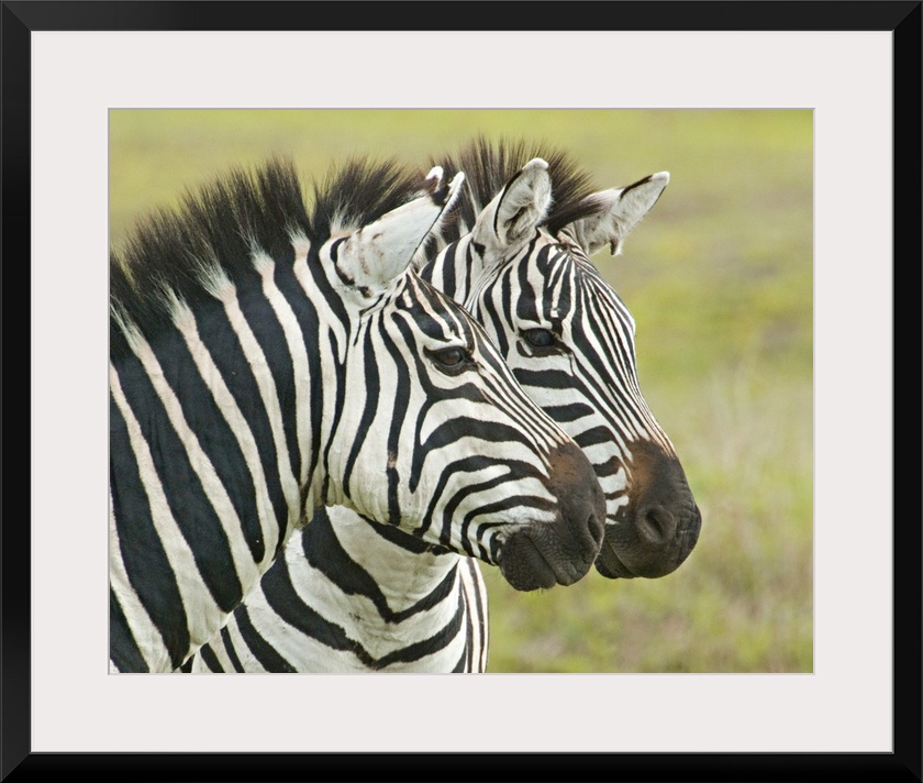 <p>Big photo on canvas of two zebras seen from their neck up next to each other.</p>