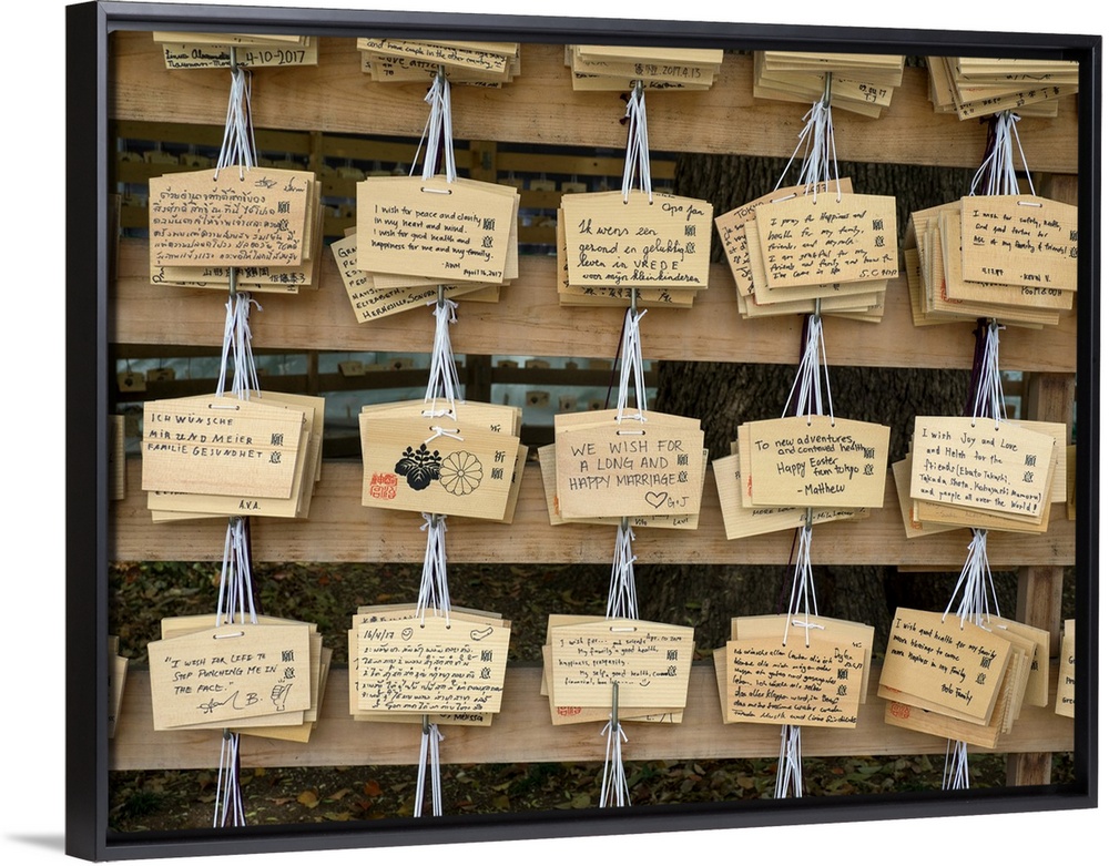 <p>Close-up of wooden plaques, Meiji Shrine, Tokyo, Japan</p>