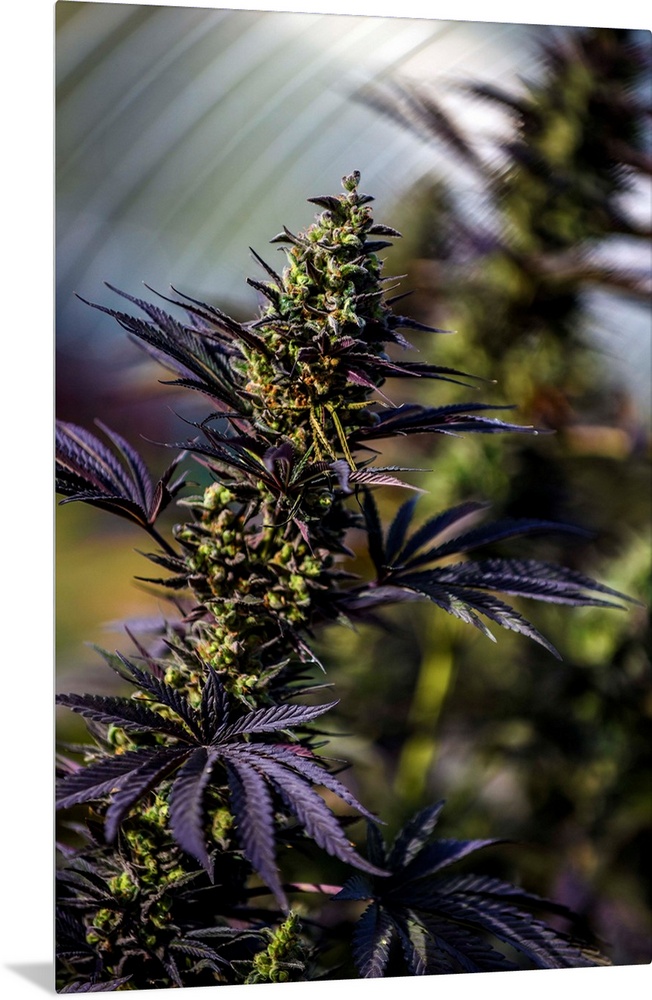 <p>Close up shot of buds and leaves of Cannabis plant, growing in outdoor cultivation facility, Colorado</p>