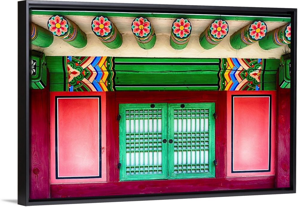 <p>Intricately painted beams and window shutters on the Royal Palace in Seoul, South Korea</p>