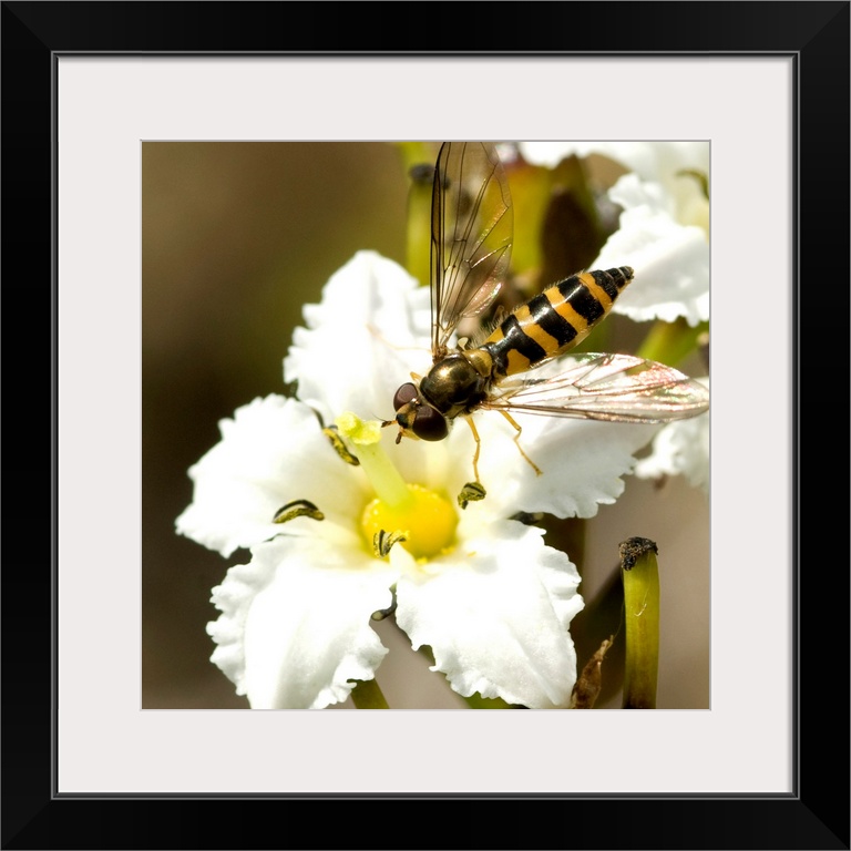 <p>Close up view of a Yellow Jacket sitting on a Deer Cabbage flower, Squire Island in Prince William Sound, Kenai Peninsula, Southcentral Alaska, Summer</p>