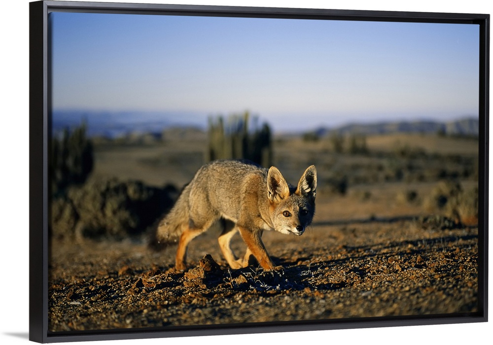 <p>Close view of a gray fox (vulpes cinereoargenteus) eyeing the camera in the Atacama Desert, Chile.</p>