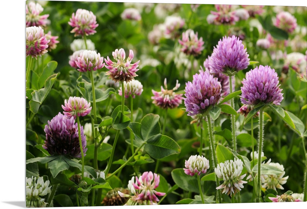 <p>Close view of red and white clover in bloom. Arlington, Massachusetts.</p>