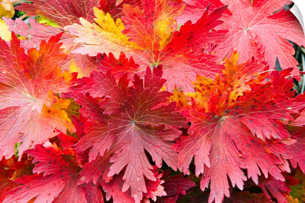 <p>Photographic print of a close-up of bright warm fall leaves.</p>