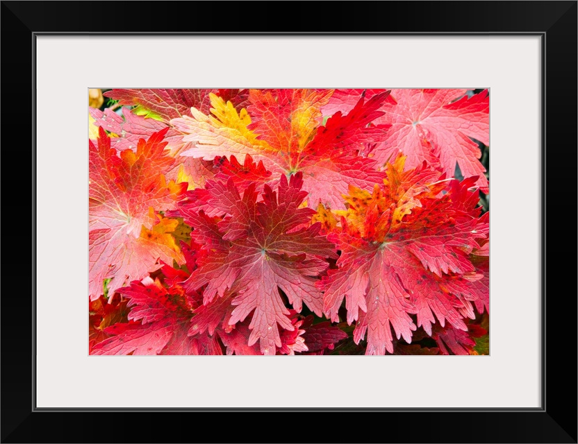 <p>Photographic print of a close-up of bright warm fall leaves.</p>