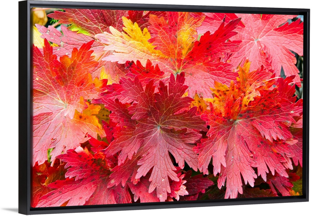 <p>Photographic print of a close-up of bright warm fall leaves.</p>