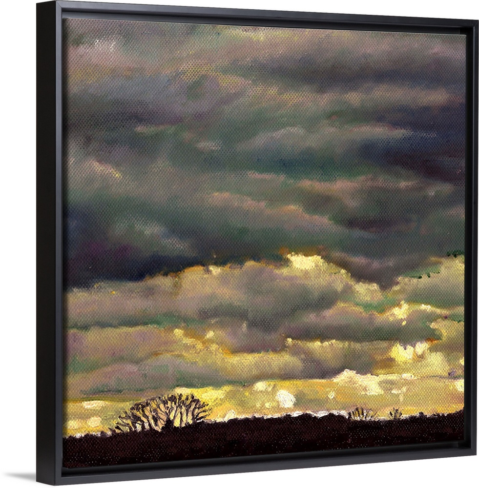 <p>Contemporary painting of a sky with layers of ominous looking clouds.</p>