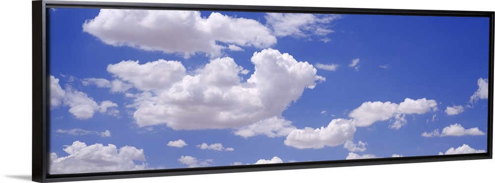 <p>Giant, landscape photograph of a light blue sky with large, fluffy, white clouds.</p>