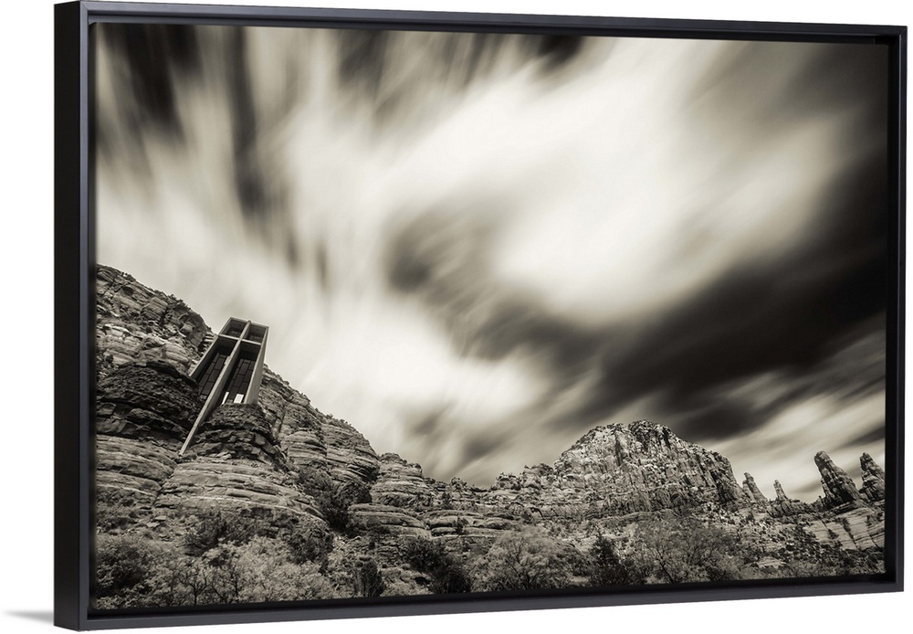 <p>Clouds above the Chapel of the Holy Cross in Sedona, Arizona</p>