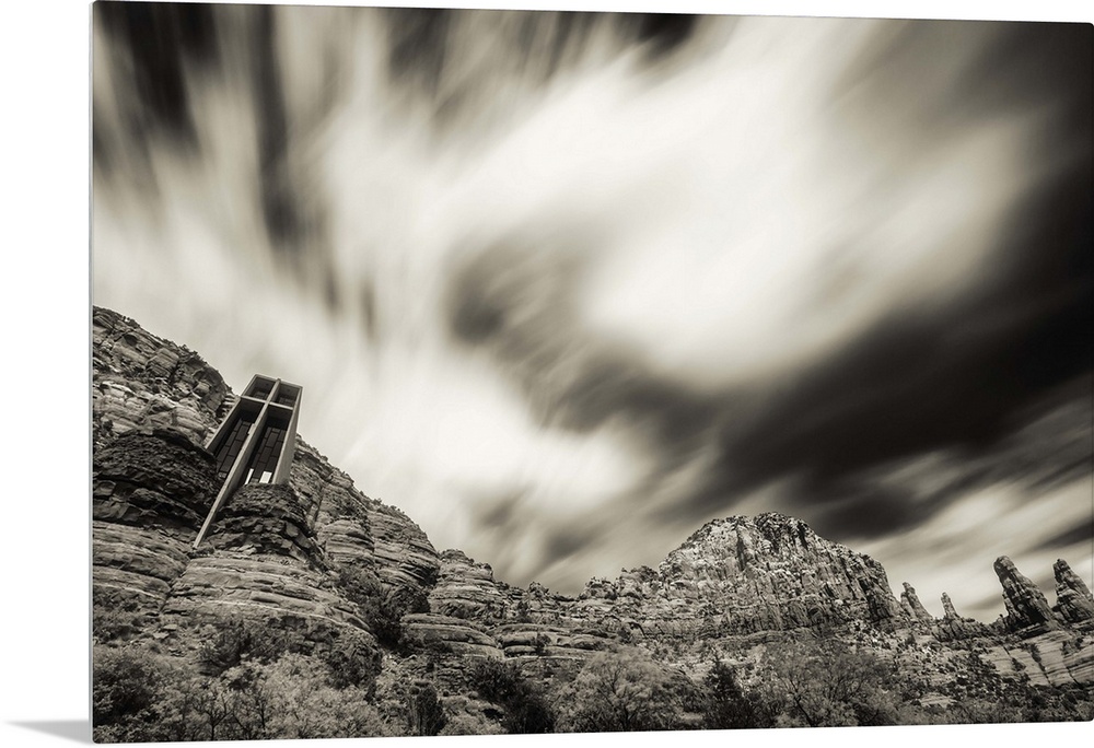 <p>Clouds above the Chapel of the Holy Cross in Sedona, Arizona</p>