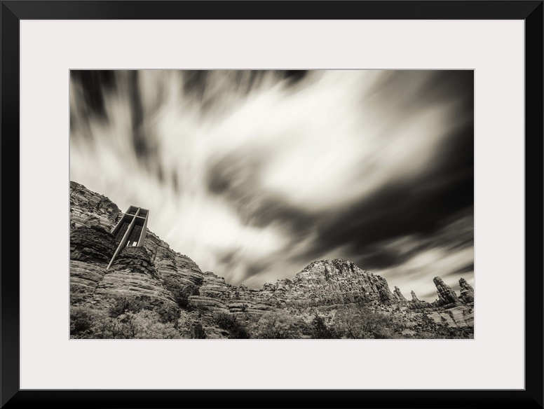 <p>Clouds above the Chapel of the Holy Cross in Sedona, Arizona</p>