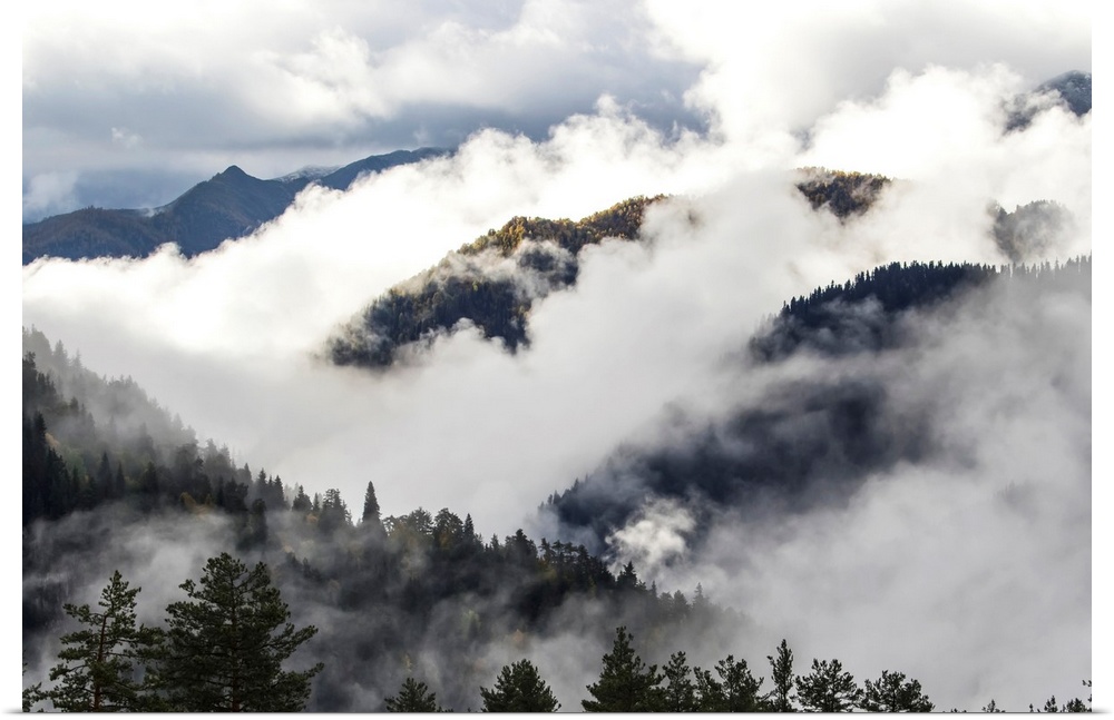 <p>Clouds in the forested valleys between Mestia and Ushguli, Upper Svaneti, Samegrelo-Zemo Svaneti, Georgia.</p>