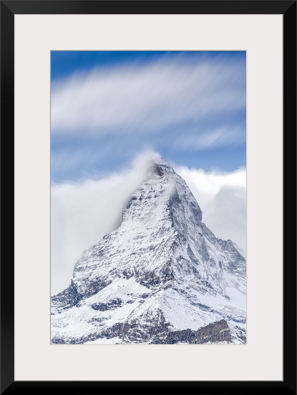 <p>Clouds over Matterhorn covered with snow, Pennine Alps, Zermatt, canton of Valais, Swiss Alps, Switzerland, Europe</p>