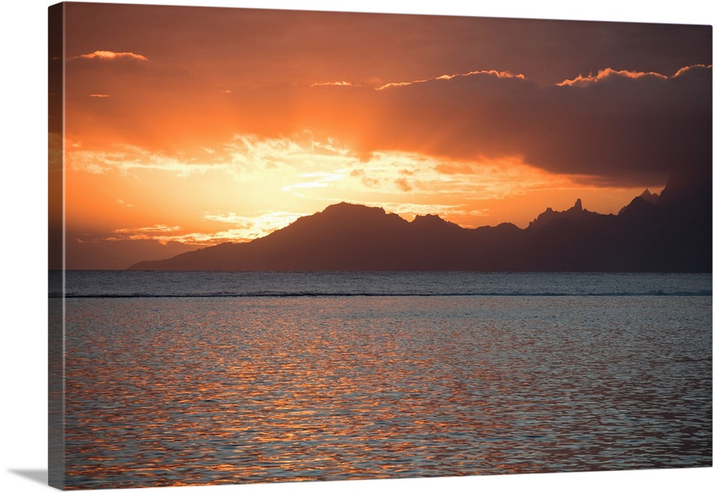 <p>Clouds over the Pacific Ocean at sunset, Moorea, Tahiti, French Polynesia</p>