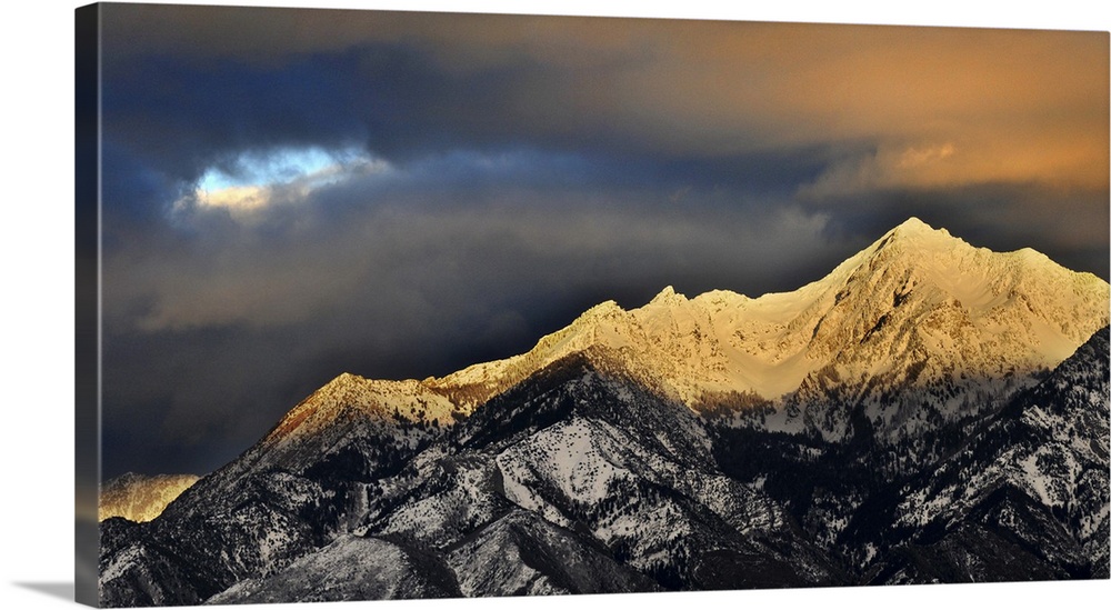 <p>Clouds hover over granite peaks of Wasatch Mountains.</p>