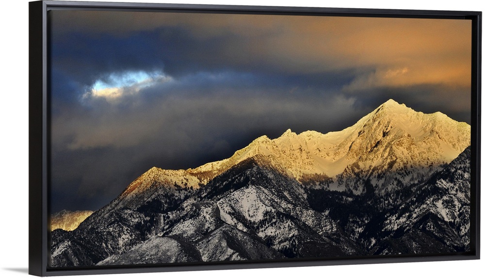 <p>Clouds hover over granite peaks of Wasatch Mountains.</p>