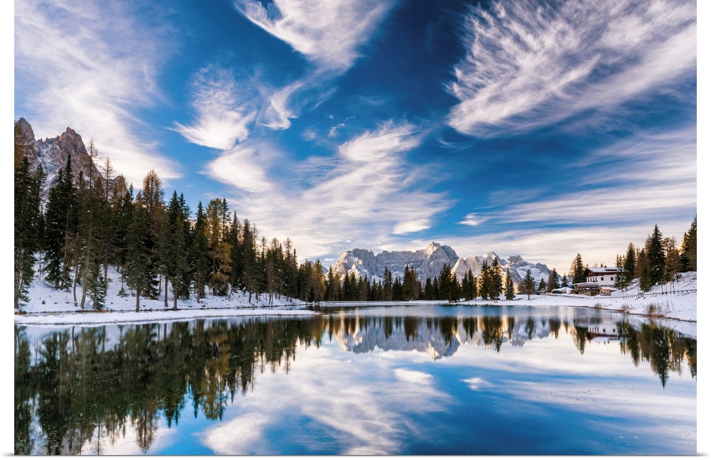 <p>Clouds Reflecting In Lake Antorno, Dolomites, South Tyrol, Italy</p>