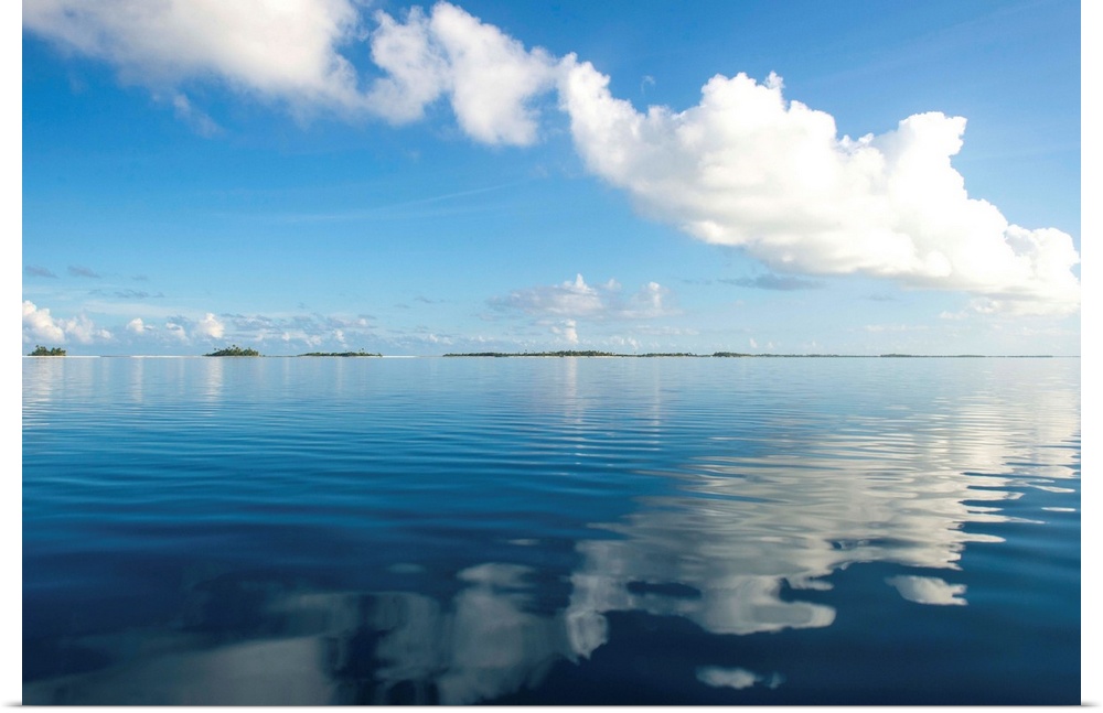 <p>Clouds reflecting in the calm waters of Tikehau, Tuamotus, French Polynesia</p>