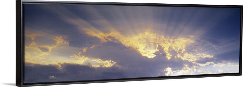 <p>A horizontal canvas photo of sun rays shining through clouds.</p>