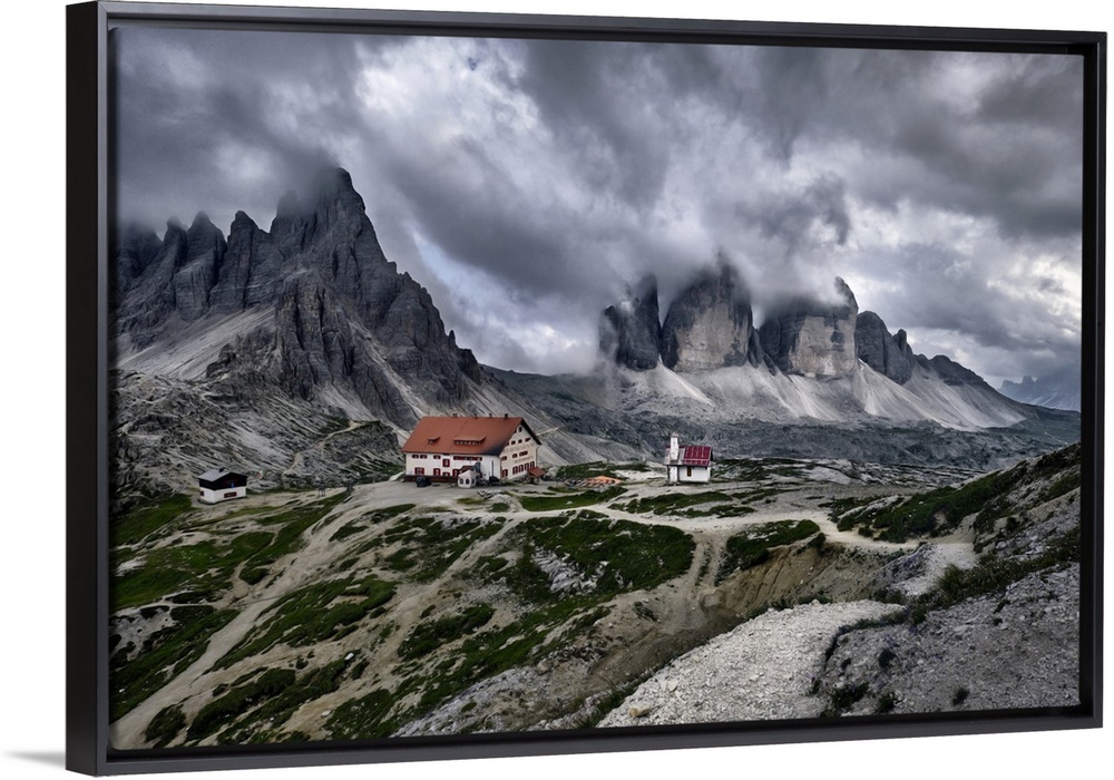 <p>Cloudy day on Locatelli hut and Three Peaks in the Dolomites, Trentino-Alto Adige, Italy, Europe</p>
