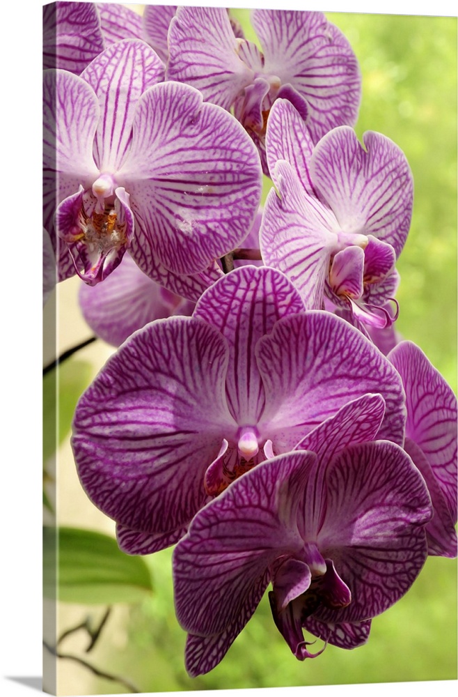 <p>Close up of a cluster of magenta Phalaenopsis orchids. Atlanta Botanical Garden, Atlanta, Georgia.</p>