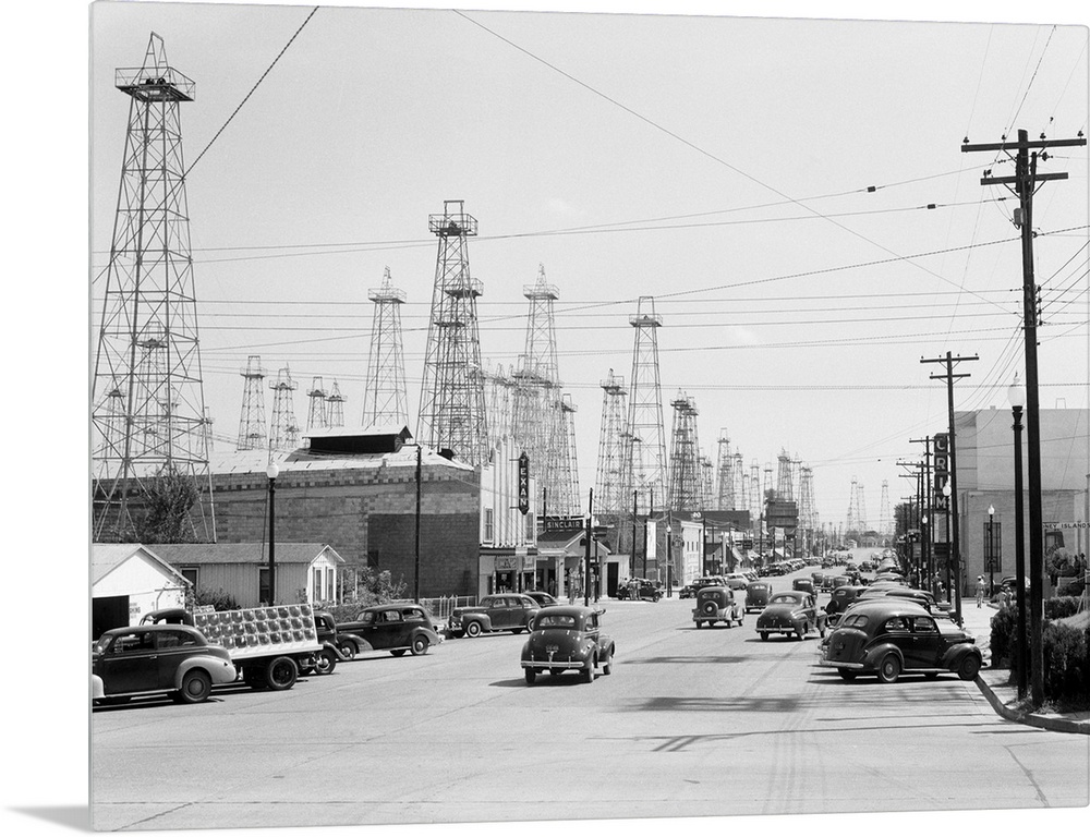 <p>View of oil derricks along main street in Kilgore, Texas. Undated photograph.</p>