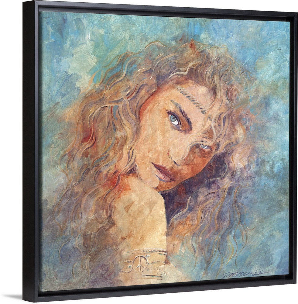 <p>Contemporary painting of a woman with a band across her forehead, looking over her shoulder.</p>