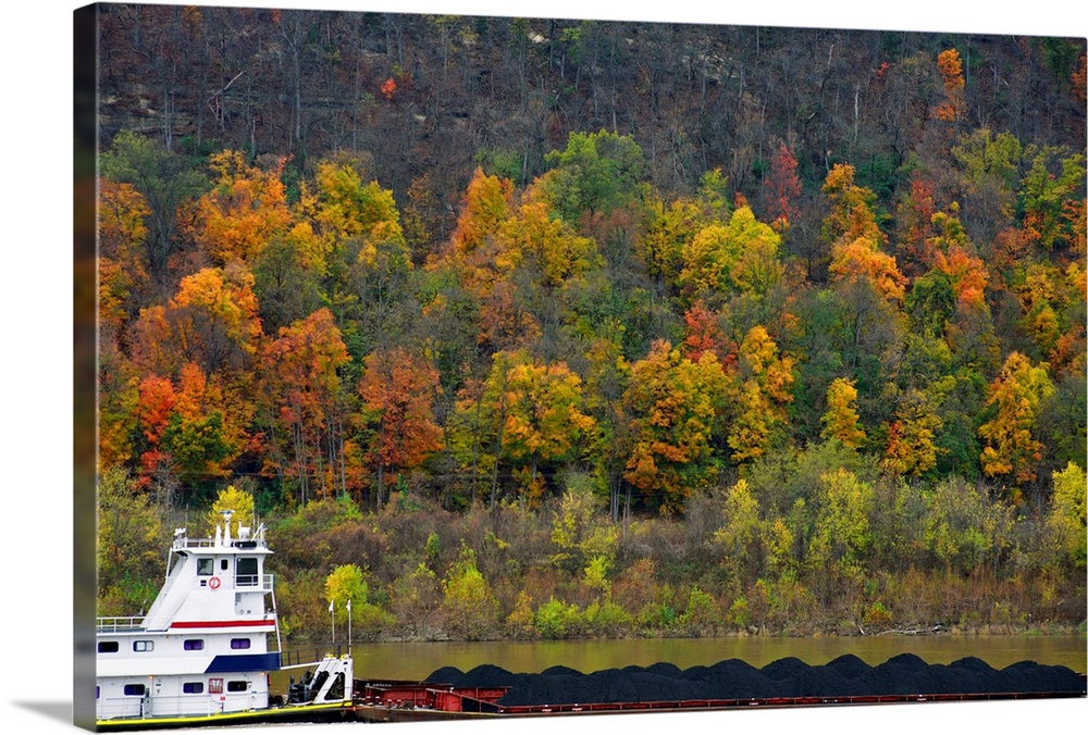 <p>Tugboat pushing a coal barge up the Ohio river.</p>