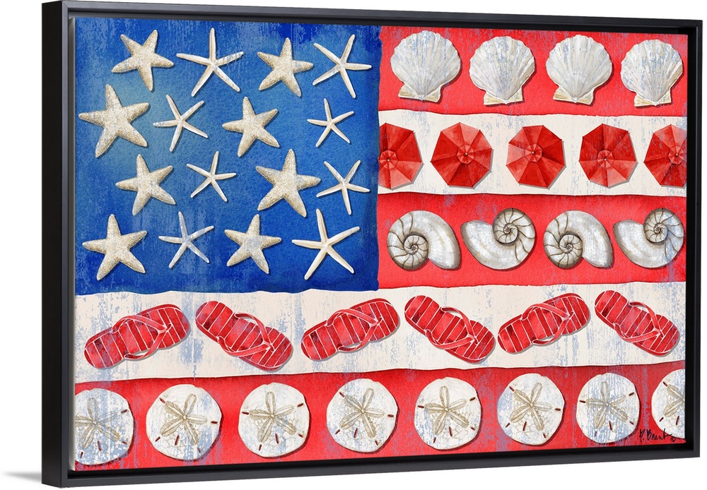 Art Beach House Décor Paul Brent Decorative Art Flags American Flag 4th of July Shells