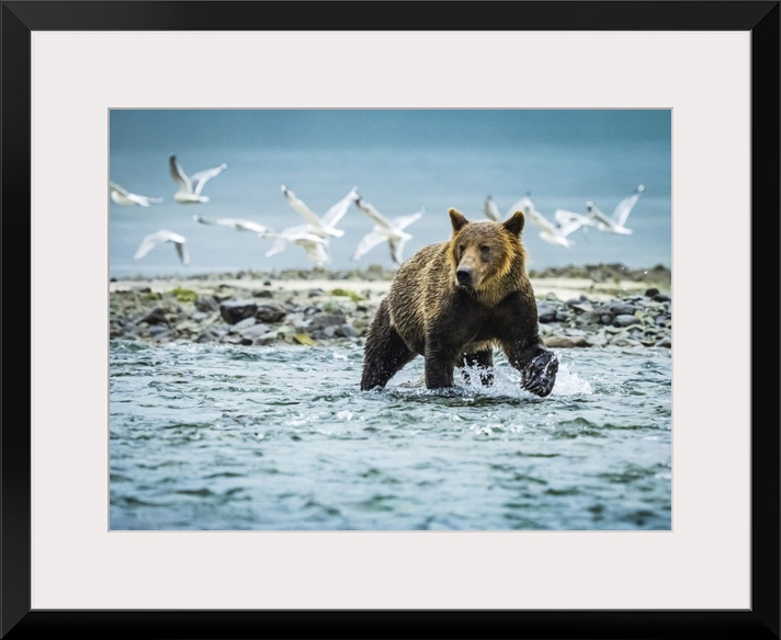 <p>Coastal Brown Bear (Ursus arctos horribilis) fishing for salmon in Geographic Harbor, Katmai National Park and Preserve, Alaska</p>