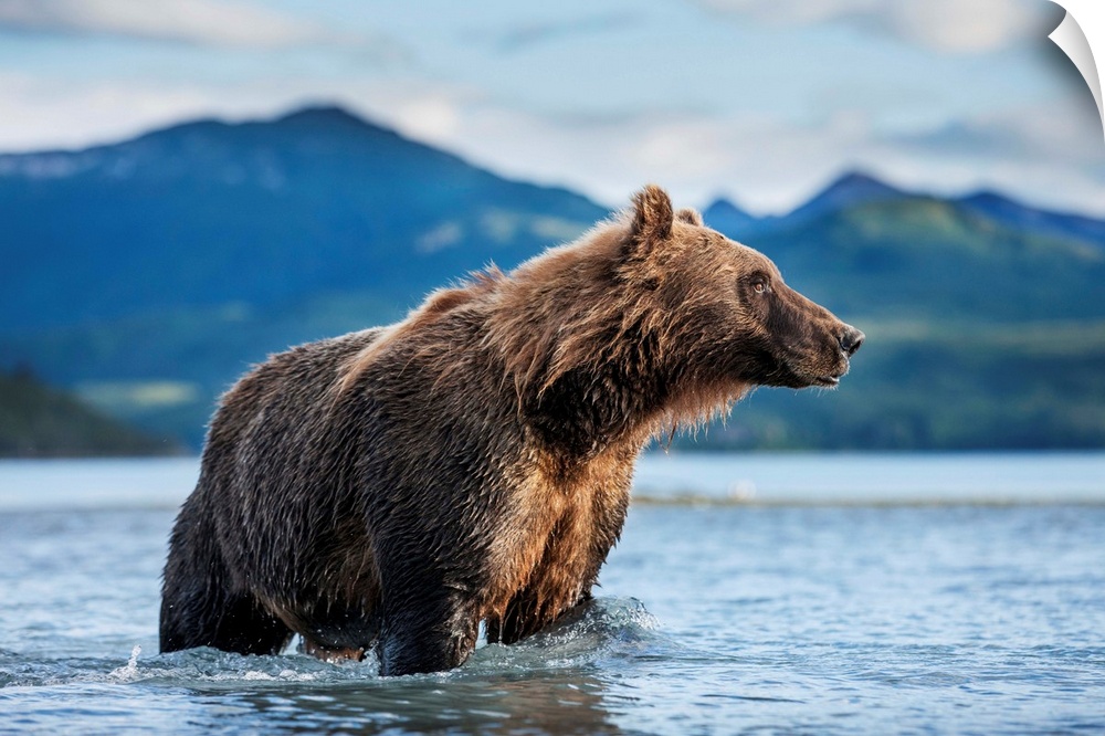 <p>Coastal Brown Bear (Ursus arctos) standing in salmon spawning stream by Kukak Bay, Katmai National Park, Alaska.</p>