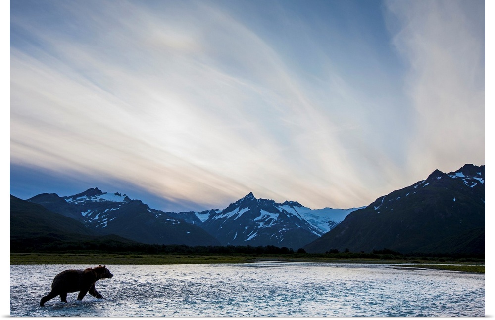 <p>Coastal Brown Bear (Ursus arctos) walking through salmon spawning stream along Kukak Bay, Katmai National Park, Alaska.</p>
