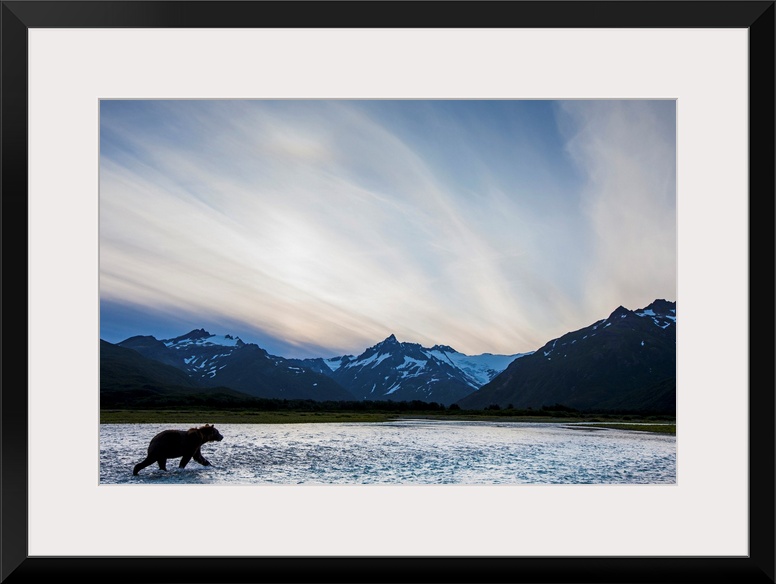 <p>Coastal Brown Bear (Ursus arctos) walking through salmon spawning stream along Kukak Bay, Katmai National Park, Alaska.</p>