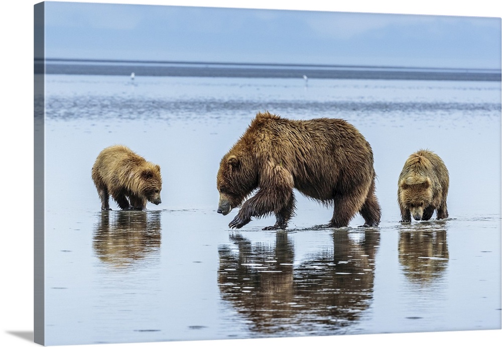 <p>Coastal brown bears, Ursus arctos, digging and eating clams at Sliver Salmon Creek in Lake Clark National Park, Alaska.</p>