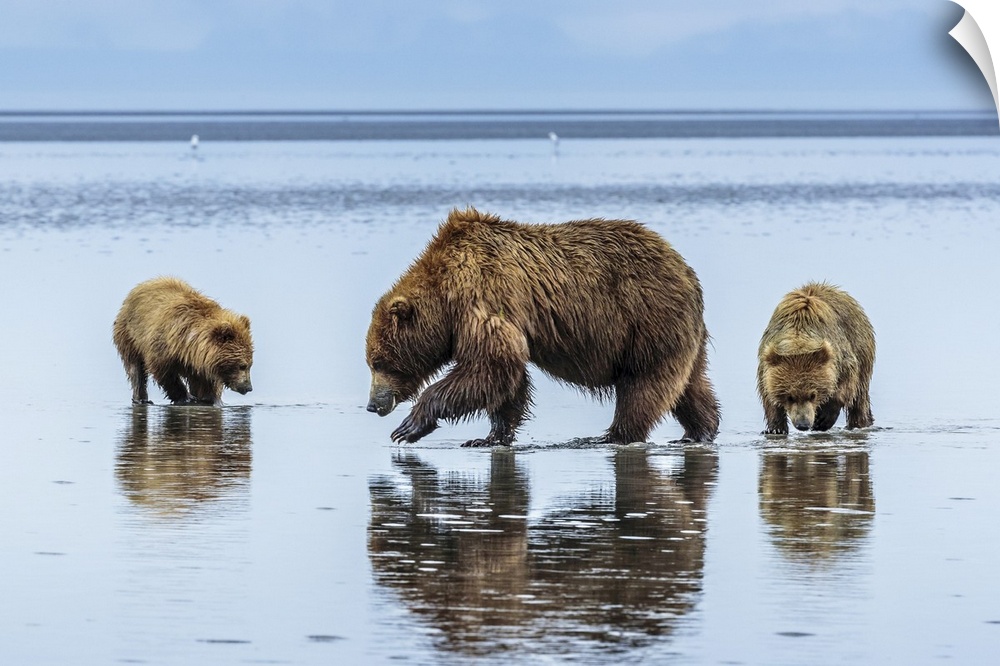 <p>Coastal brown bears, Ursus arctos, digging and eating clams at Sliver Salmon Creek in Lake Clark National Park, Alaska.</p>