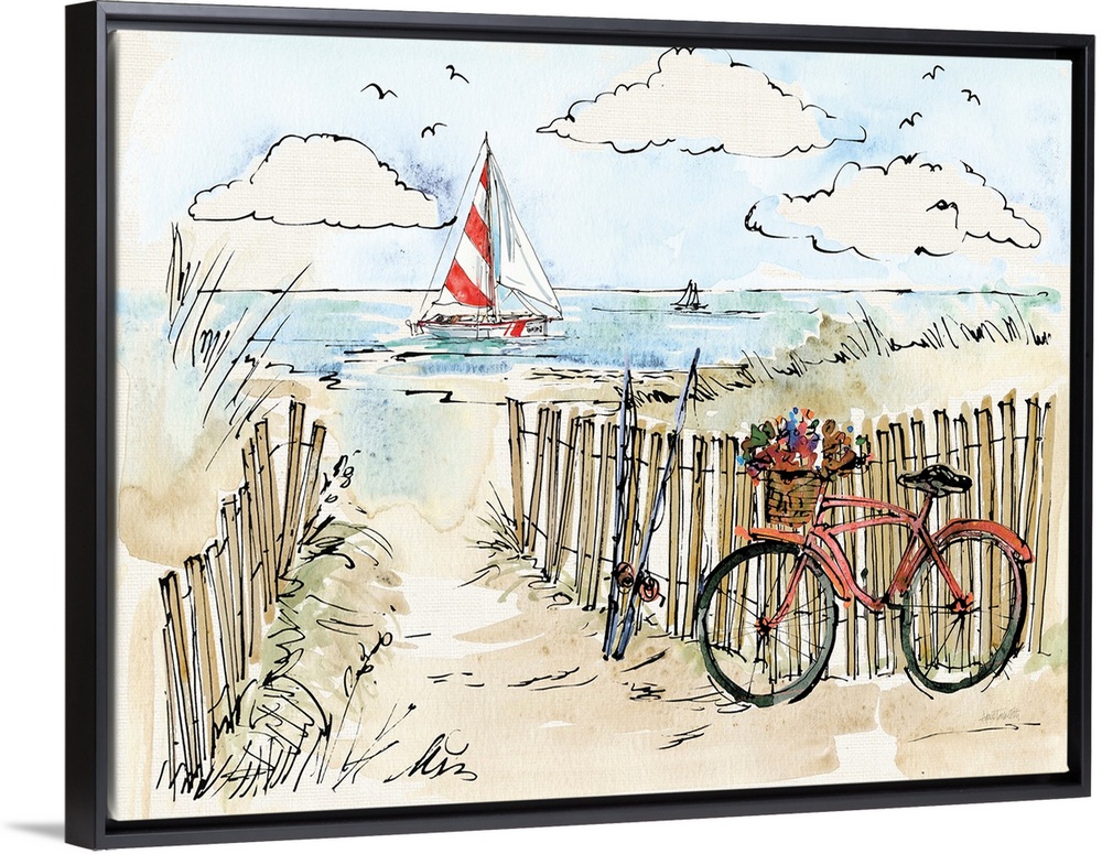 Art Coastal Landscapes Decorative Art Landscapes Beaches Painting Anne Tavoletti Bicycle Sailboat Watercolor