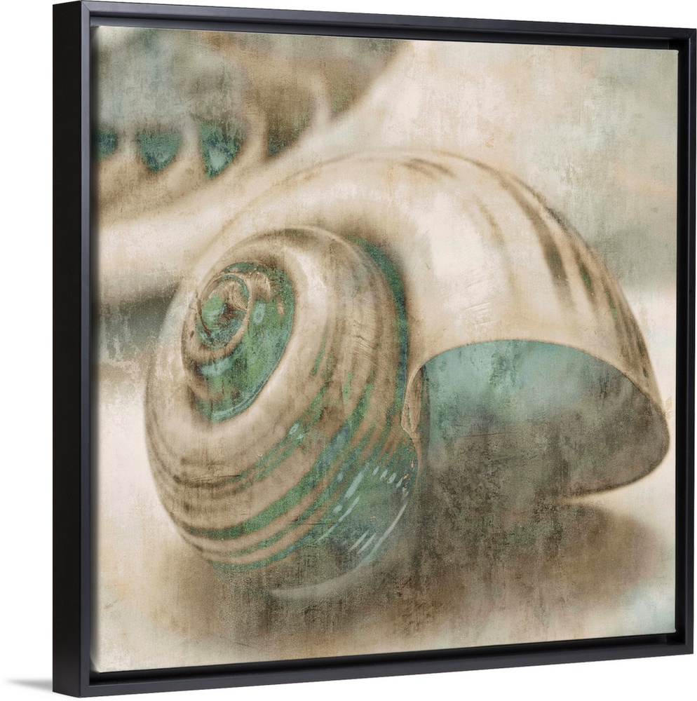 <p>Square decor with cream and tan seashells that have teal highlights.</p>
