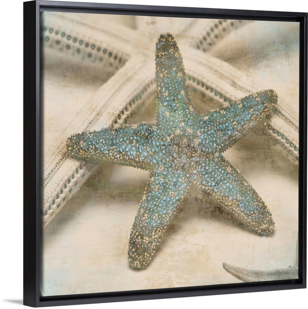 <p>Square decor with cream and tan starfish that have teal highlights.</p>