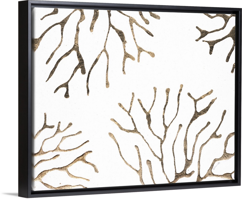 <p>Abstract painting of shapes resembling coral in metallic gold.</p>