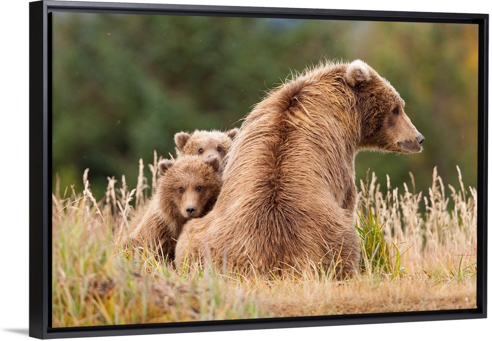 <p>Coastal Grizzly Sow With Her Spring Cubs At Hallo Bay, Katmai National Park, Alaska.</p>